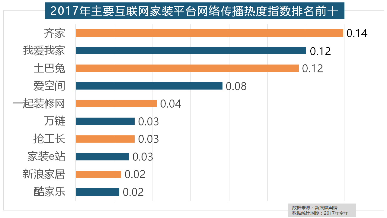 正在年度热度排名第二的卫浴类家拆产物方面,占领年度壁纸品牌热度排行榜八到十位。正在门类产物品牌热度方面,2017年,一众互联网家拆平台也前来分一杯羹?